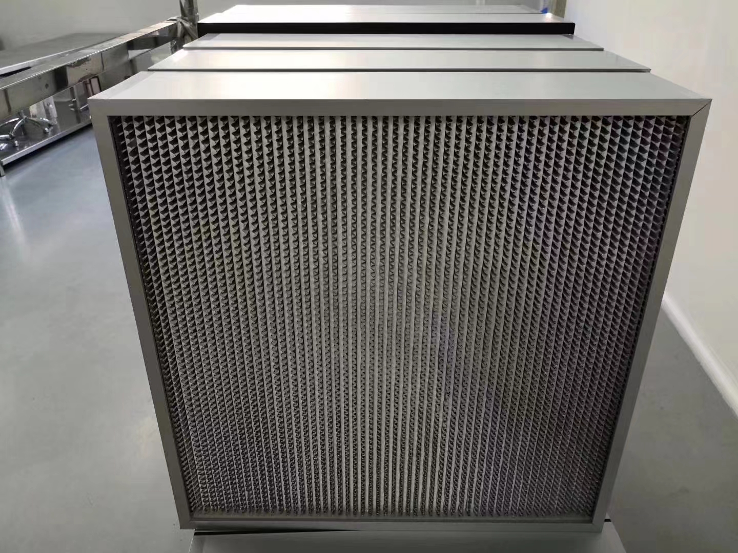 又名:有隔板高效過濾器,玻纖過濾器,Hepa過濾器,高效濾網(wǎng),鋁箔過濾器,無塵車間潔凈室手術(shù)室實驗室送風(fēng)口過濾器等,主要用在一些高衛(wèi)生環(huán)境要求的送風(fēng)系統(tǒng),捕捉≥0.3μm的灰塵顆粒,保持室內(nèi)環(huán)境不受粉塵污染,防止細(xì)菌滋生的作用。鋁隔板高效過濾器的常用場所:適用于潔凈室的末端送風(fēng)口、FFU、潔凈設(shè)備等凈化場合, 用于電子、半導(dǎo)體、制藥、醫(yī)院、食品等行業(yè)。