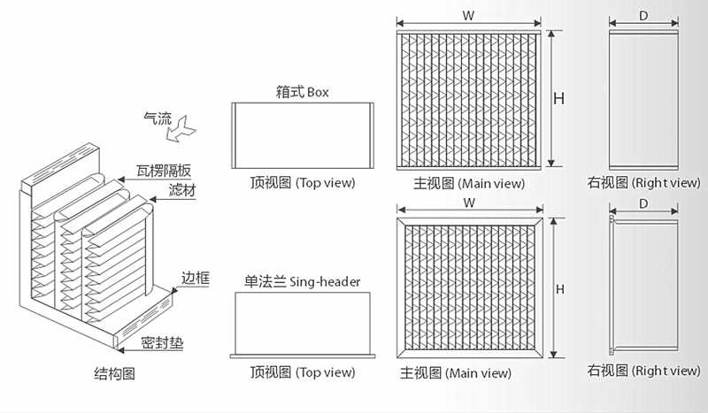 濾料:玻纖濾紙,鋁瓦楞,高溫膠條