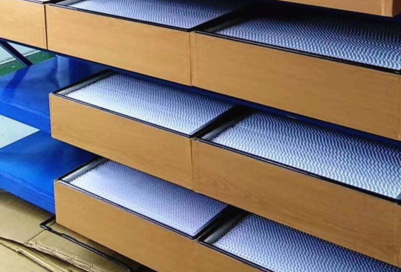 又名木框紙隔板、鋁框紙隔板,高效濾紙過濾器,用在潔凈室、新風(fēng)機(jī)組、無(wú)塵車間、高效送風(fēng)口等處,主要過濾≥0.3μm的粉塵顆粒。濾料采用超細(xì)玻璃纖維過濾紙,及波浪型紙板平鋪相隔,裝框架內(nèi)后用雙組份AB膠固定,達(dá)到不漏風(fēng)的狀態(tài)即可。
